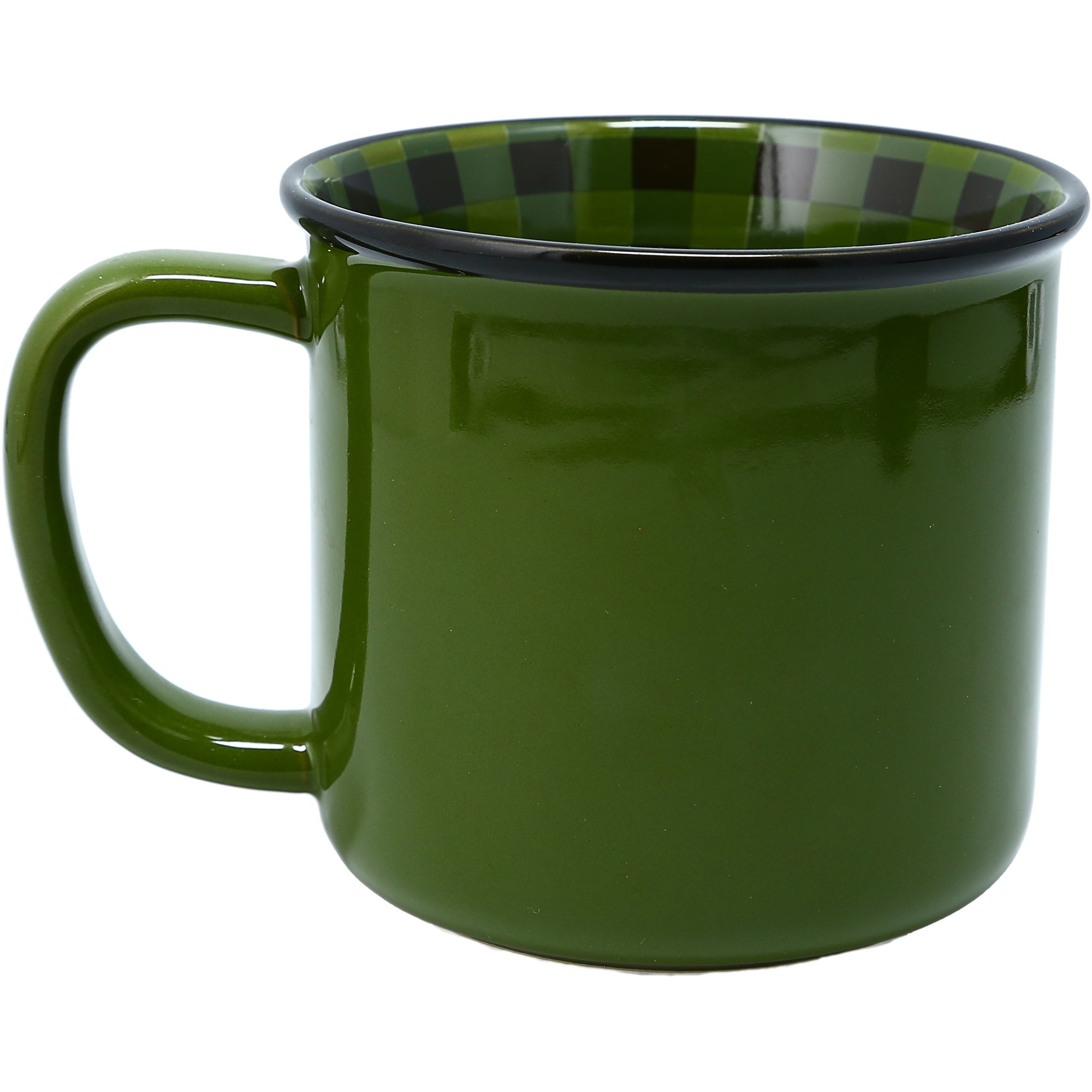 - IN-HOUSE DESIGN: The green coffee cup features an "Camping Dad" one-sided design accompanied by an interior plaid wrap-around pattern and a trio of pine trees decal.
