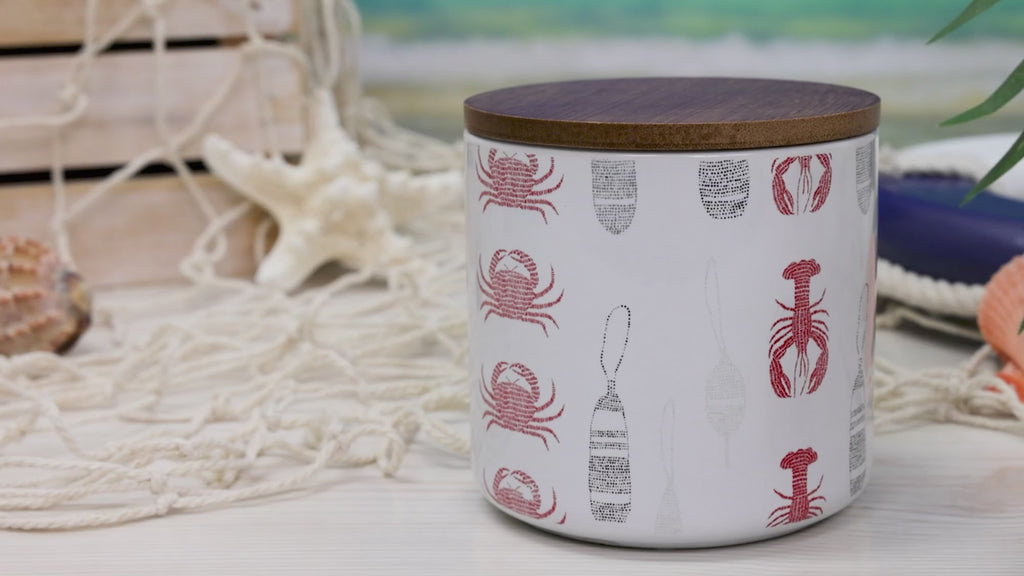 • IN-HOUSE DESIGN: The Coastal Candle features a coastal-inspired design with intricate line-drawn lobsters, crabs, and buoys in soft coral and black tones, giving it a modern yet rustic seaside feel. This sophisticated artwork makes it a perfect addition to any beach house or coastal decor.