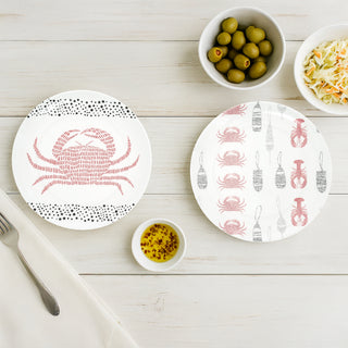 • IN-HOUSE DESIGN: The Coastal Melamine Appetizer Plates feature a bold red crab print, complemented by nautical rope and buoy illustrations, bringing a vibrant oceanic charm to your table. Perfect for seafood lovers and coastal décor enthusiasts.