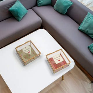 - PREMIUM QUALITY: This 4.25" x 4.25" glass keepsake box offers a delicate combination of elegance and functionality. The sturdy steel frame with a gold-tone finish enhances its durability and charm, while the secure packaging ensures safe delivery. The interior is crafted to store jewelry, trinkets, or sentimental keepsakes, making it a beautiful addition to any space.