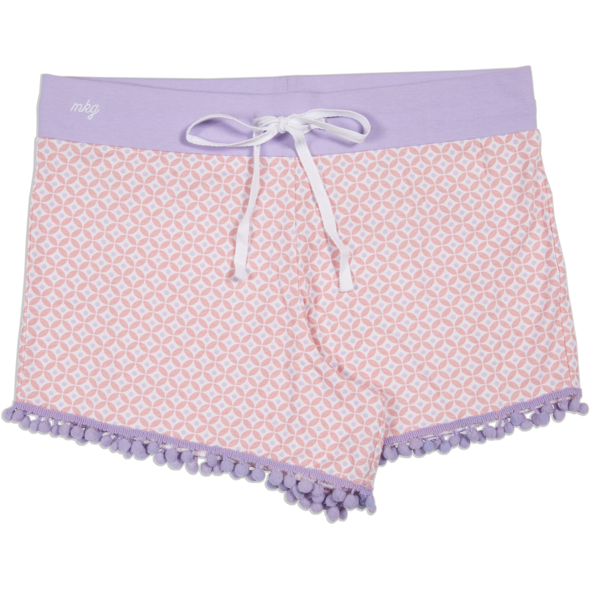 - IN-HOUSE DESIGN: "MKG" text is embroidered onto the waistband of the shorts and a geometric pattern and mini pom-pom trim cover the rest of the shorts.