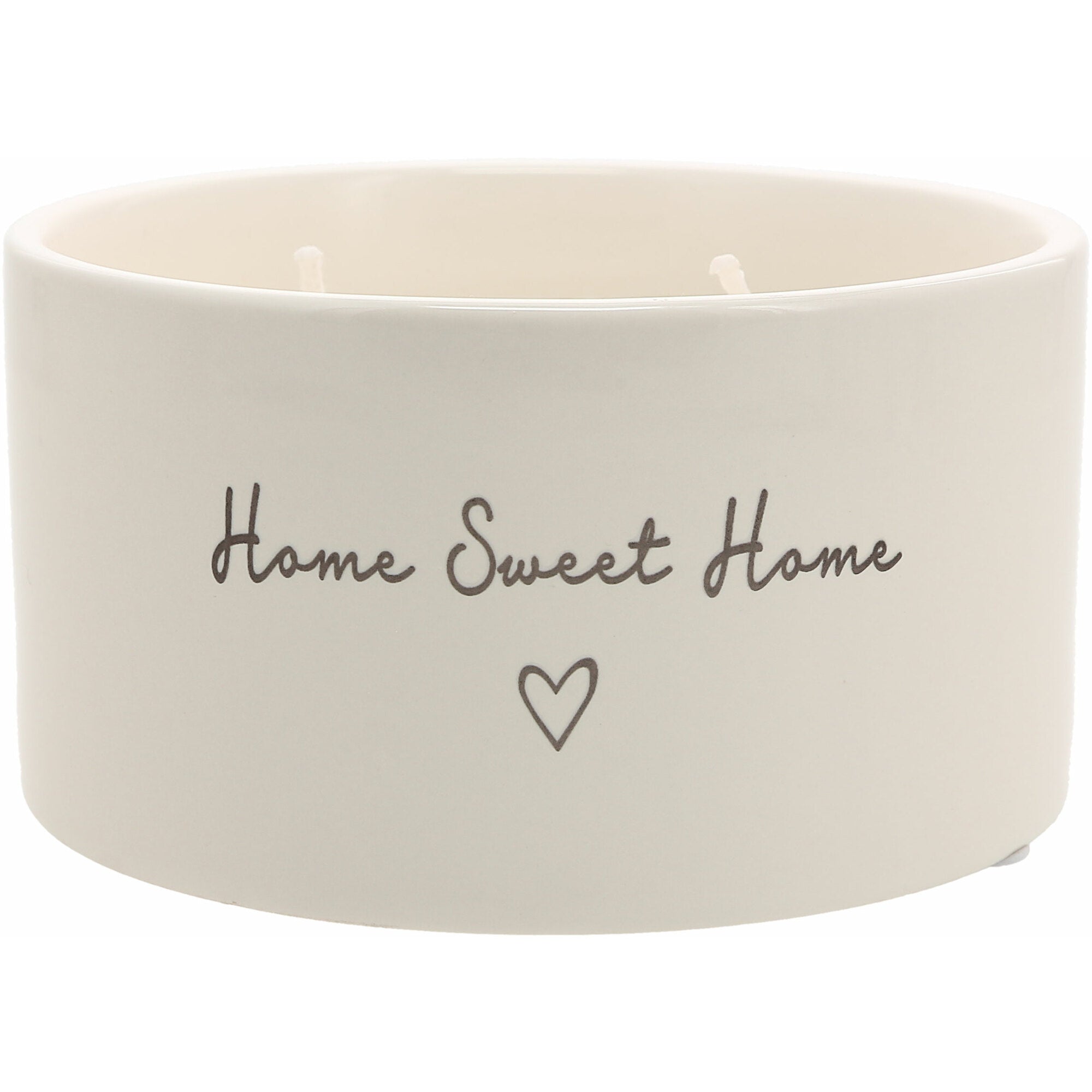 - IN-HOUSE DESIGN: The front of the candles has a simplistic "Home Sweet Home" matte bronze decal accompanied by a heart on a glossy white exterior smooth-edged vessel with glossy cream interior walls.