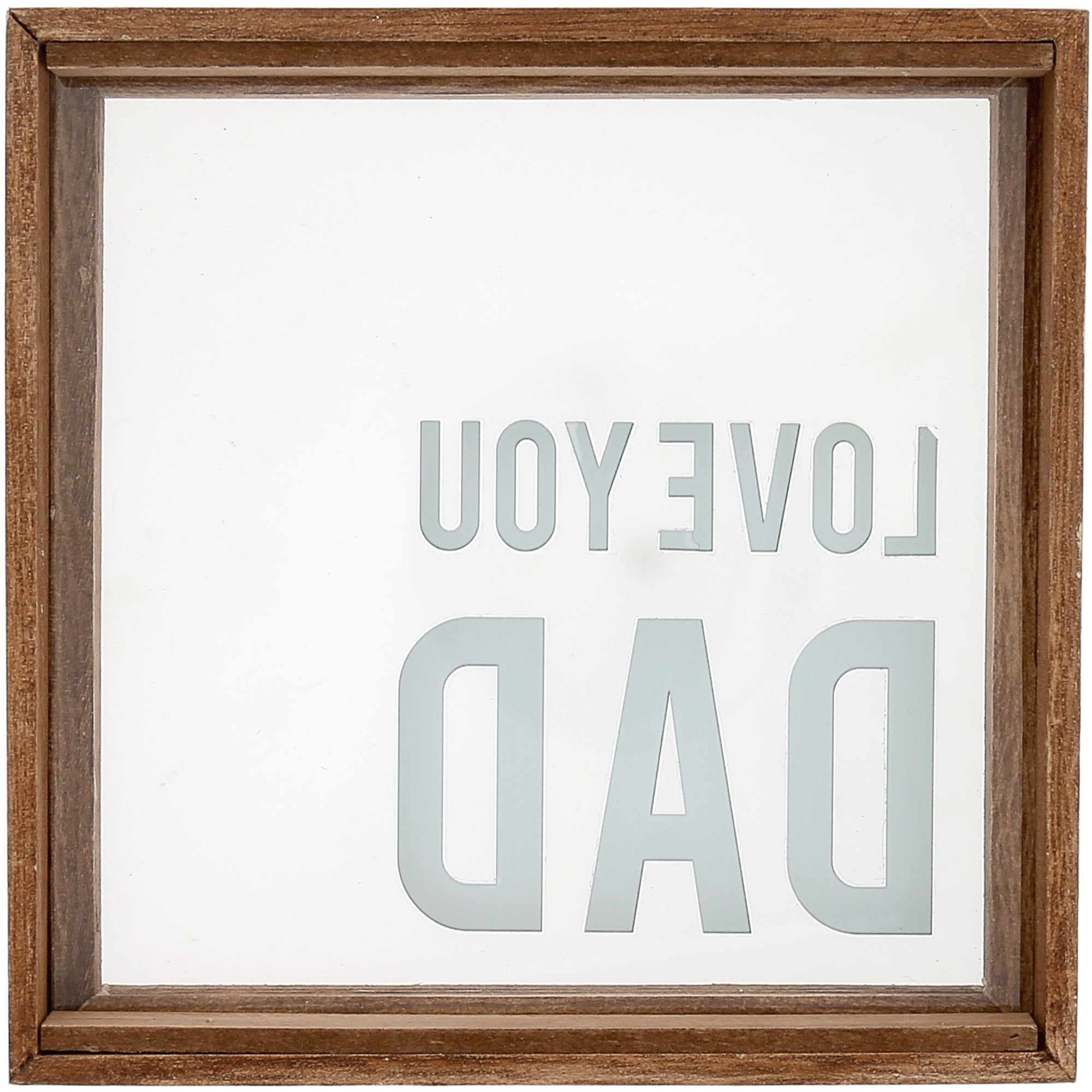 - PREMIUM QUALITY: This 5" x 5" plaque features a dark wood-stained frame and a clear glass panel with the simple and heartfelt phrase “Love You Dad.” Comes with a metal sawtooth hanger and can also stand on its own.