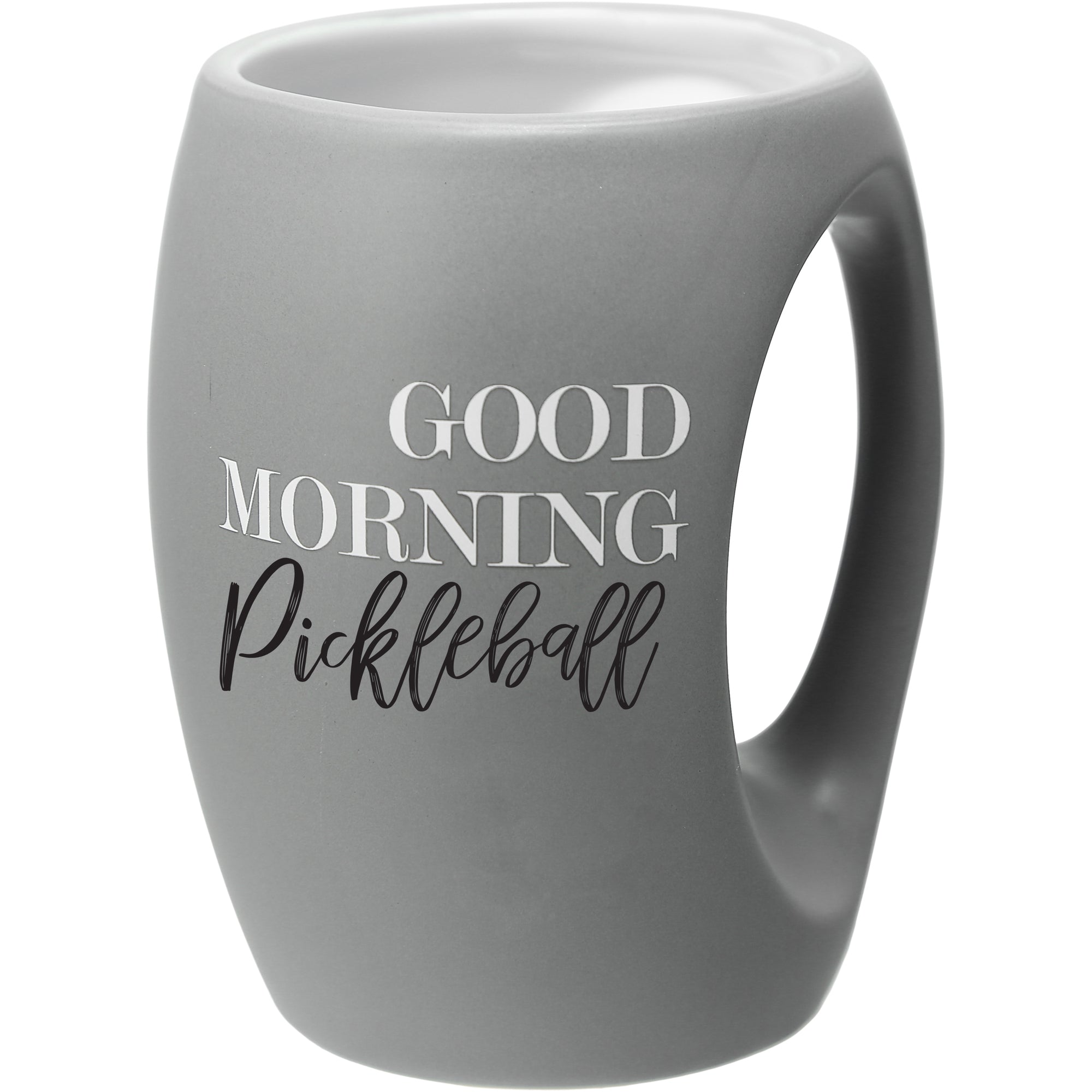 - IN-HOUSE DESIGN: "Good Morning Pickleball" white and black sentiment decal on the front side of the matte gray cup. The Interior is white and has a glossy glaze prop 65 food-safe finish. We designed and created this mug to blend in with any of your kitchen's current drinkware collections with a refined, modern, and aesthetically pleasing look paired with humor and relatable sentiment.