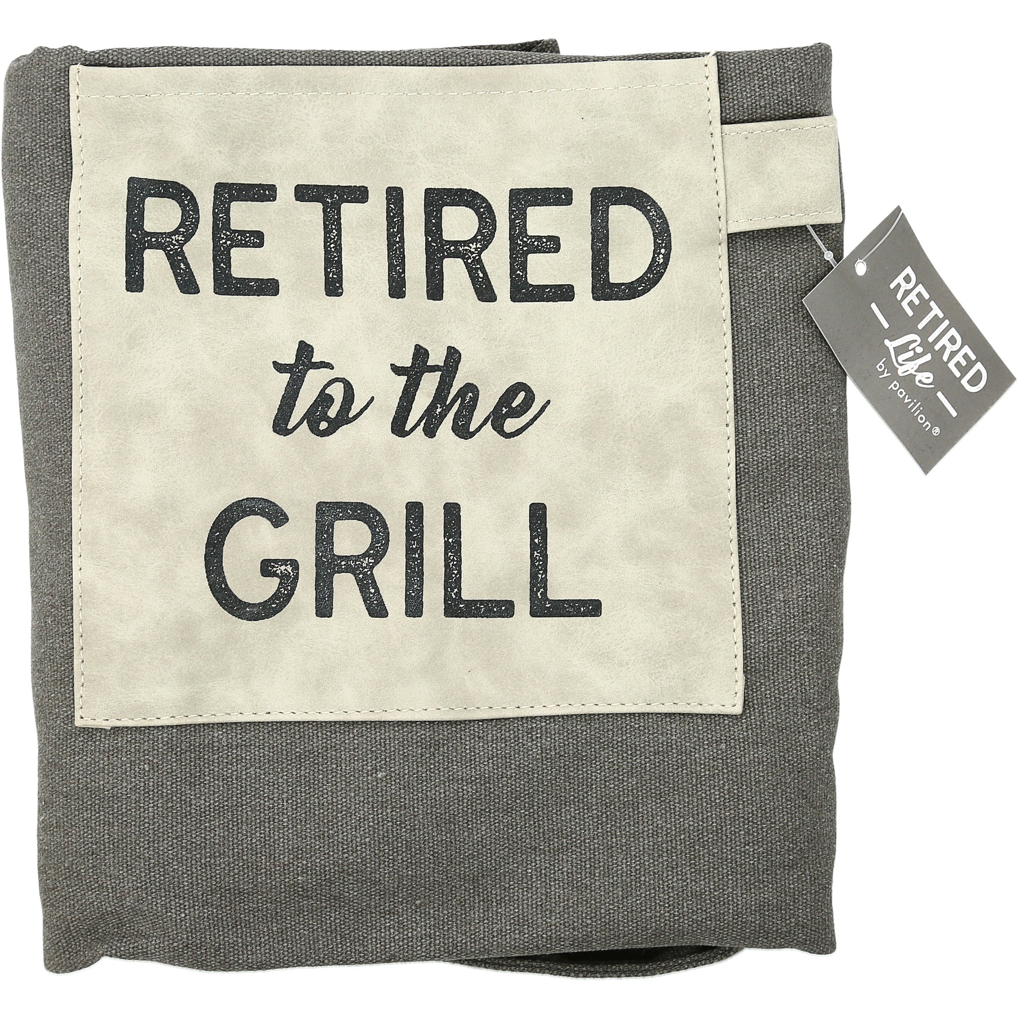 - IN-HOUSE DESIGN: Retired to the Grill is printed onto the front of the apron on the center pocket of this 100% heavy duty cotton canvas tie-back apron. The three metal accent clips are securely attached to the front of the apron for easily clipping on all of your favorite grilling tools. The canvas strap around the neck is adjustable and has a metal slide for an easy adjusting. The apron ties in the back to ensure the apron stays put when you're flippin burgers! This one size fits all design takes the guesswork out of buying the right size. Adjust the neck, tighten or loosen the back ties and you're set to go. Make retirement even more awesome by gifting this apron!