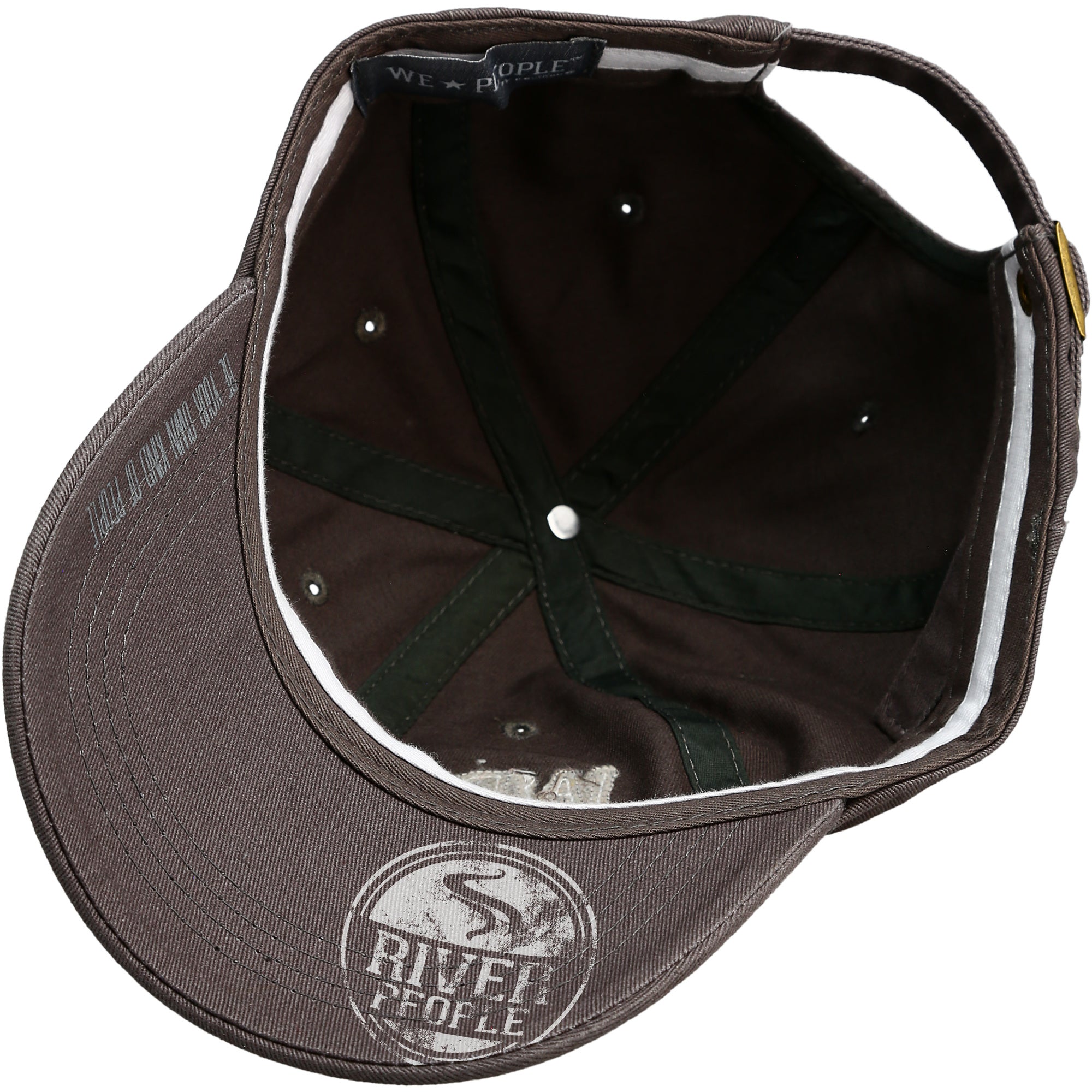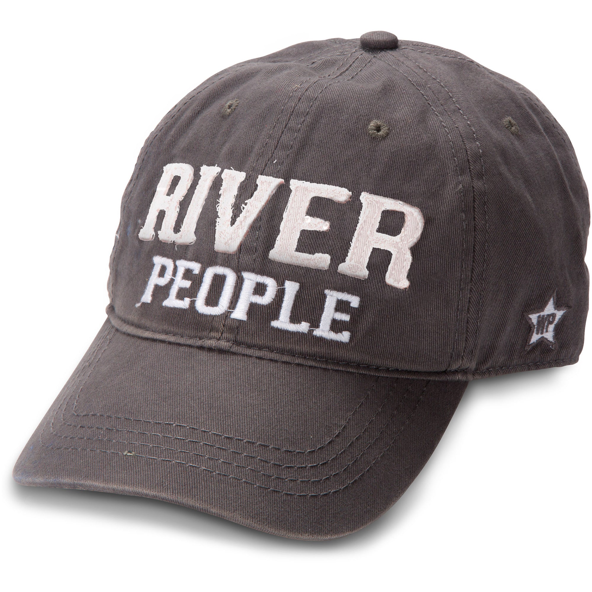 • IN-HOUSE DESIGN: "River People" text is embroidered and sewn-in with a frayed edge, as is the We People logo on the side of the hat. The brim features screen-printed text showing the "River People" logo.