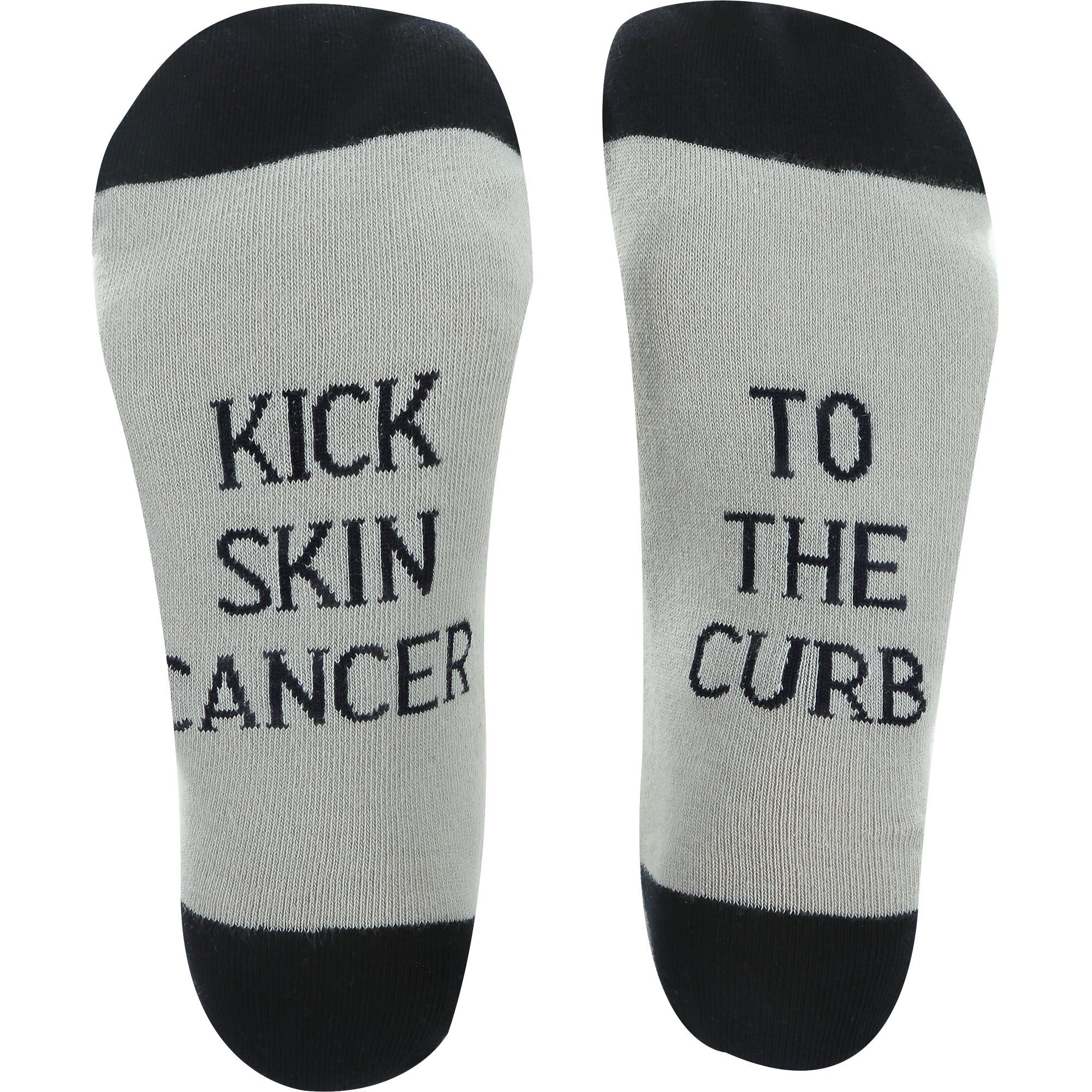 - IN-HOUSE DESIGN: "Kick Skin Cancer To The Curb" text is sewn into the base of the socks.