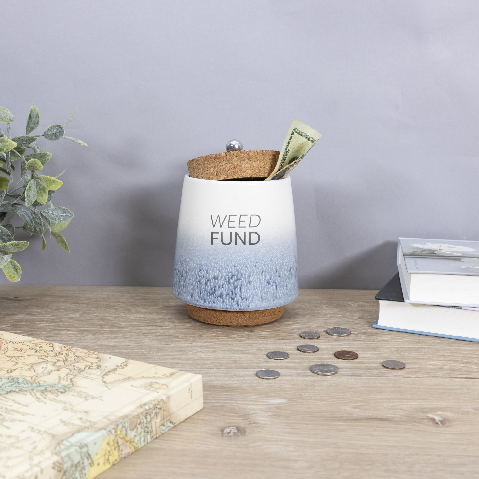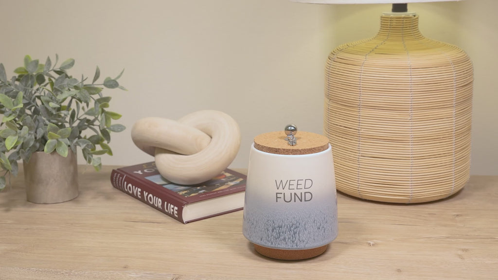 - IN-HOUSE DESIGN: The front side of the piggy bank has a simplistic "Weed Fund" gray sentiment and an ombre glossy reactive dripped speckling glaze that fades from white at the top to blue at the bottom. The interior of the jar features fill lines accompanied by sentiments that are .75 inches from one another. The very bottom line "Not Enough Fund$" goes up to 1.5 inches from the base, followed by "Getting There," leading to "So Much Fund$" with "Fully Funded" at the top.
