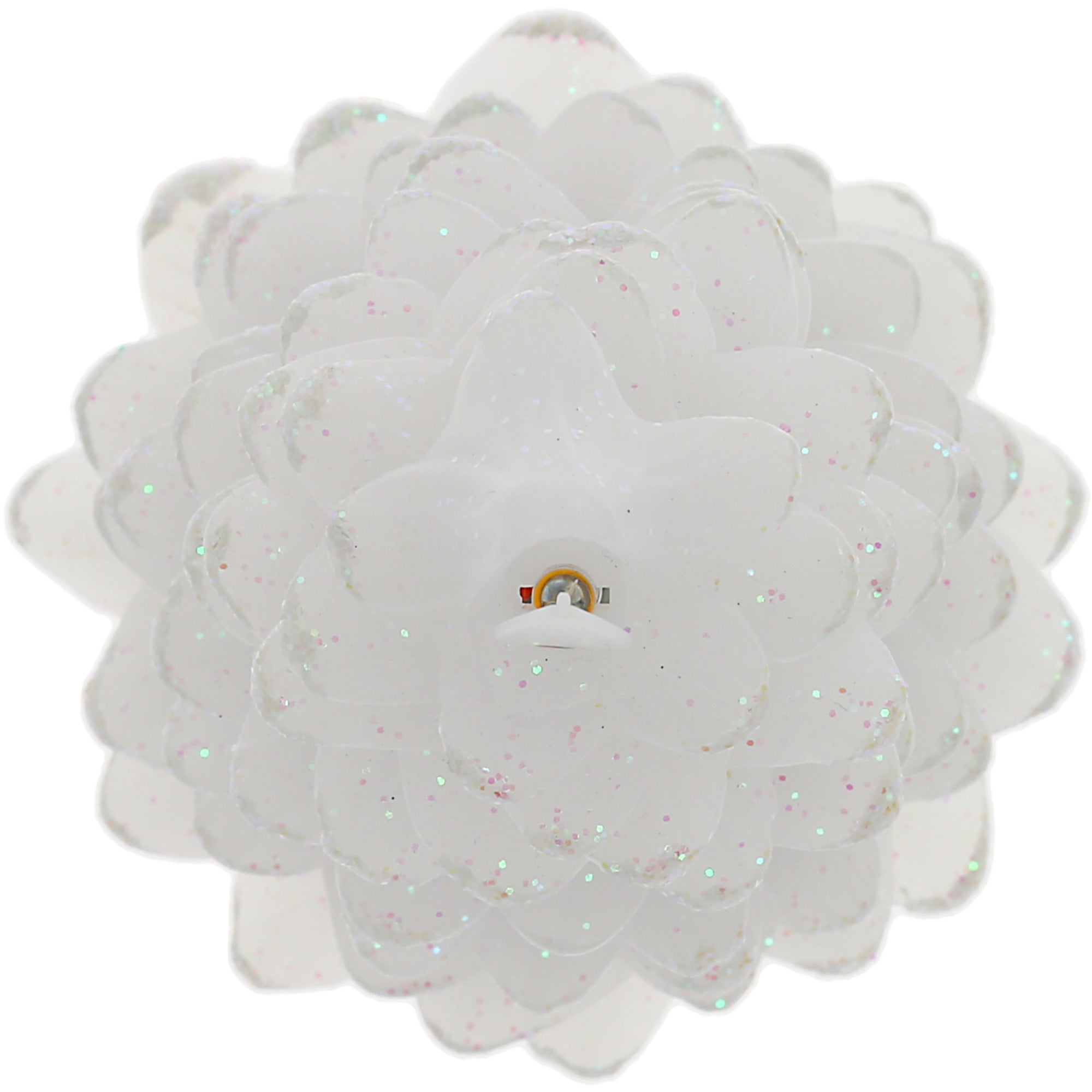 - IN-HOUSE DESIGN: The white wax pine tree has frosted white snow tips and an added sparkling glitter touch. The waving flame imitates a real candle without the risks of open fire that can be hazardous to densely decorated areas.